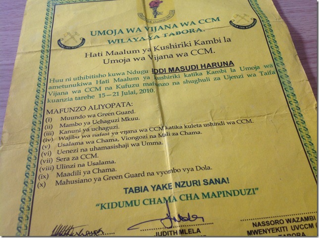Aidha, katika ushahidi huu, ambao ni mwendelezo wa ushahidi kibao (wanaosubiri polisi na msajili wa vyama kuchukua hatua?), utaona Mkuu wa Wilaya, ambaye kinadharia anadhaniwa kuwa kiongozi wa serikali, (kivitendo sivyo, hovyo kabisa), ndiye mlezi wa makambi ya vijana wa CCM ambao wanafundishwa mbinu mbalimbali, ikiwemo kutumia silaha na kuua.