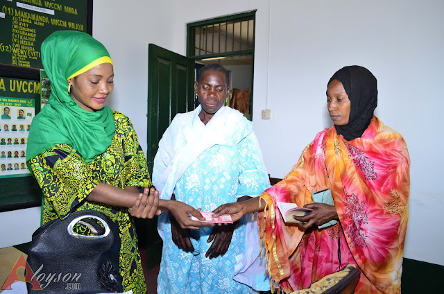 Zahara (kushoto) akilipia fedha halali ya form hiyo huku mama yake mlezi (katikati) akishuhudia kitendo hicho.