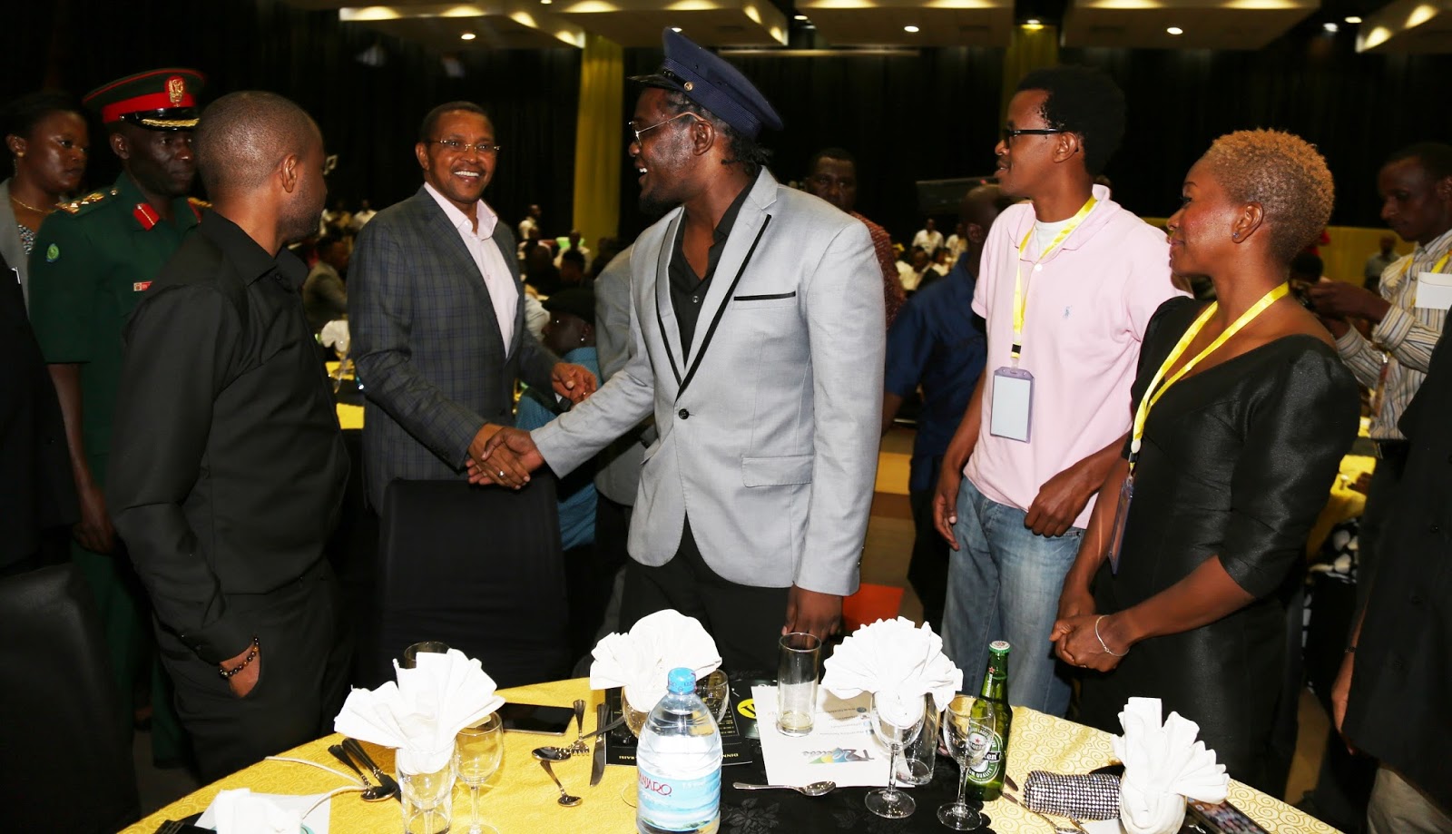 Meza kuu wakishangilia baada ya JK kutangazwa Shujaa wa wasanii