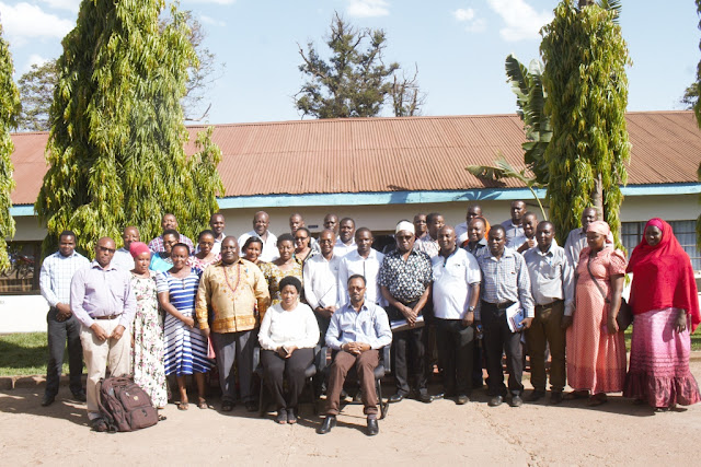 Madiwani wakiwa katika picha ya pamoja na watendaji wa Mamlaka ya maji safi na usafi wa mazingira mjini Moshi (MUWSA) mara baada ya kuhitimisha ziara ya kutembea ofisi hizo pamoja na vyanzo vya maji.